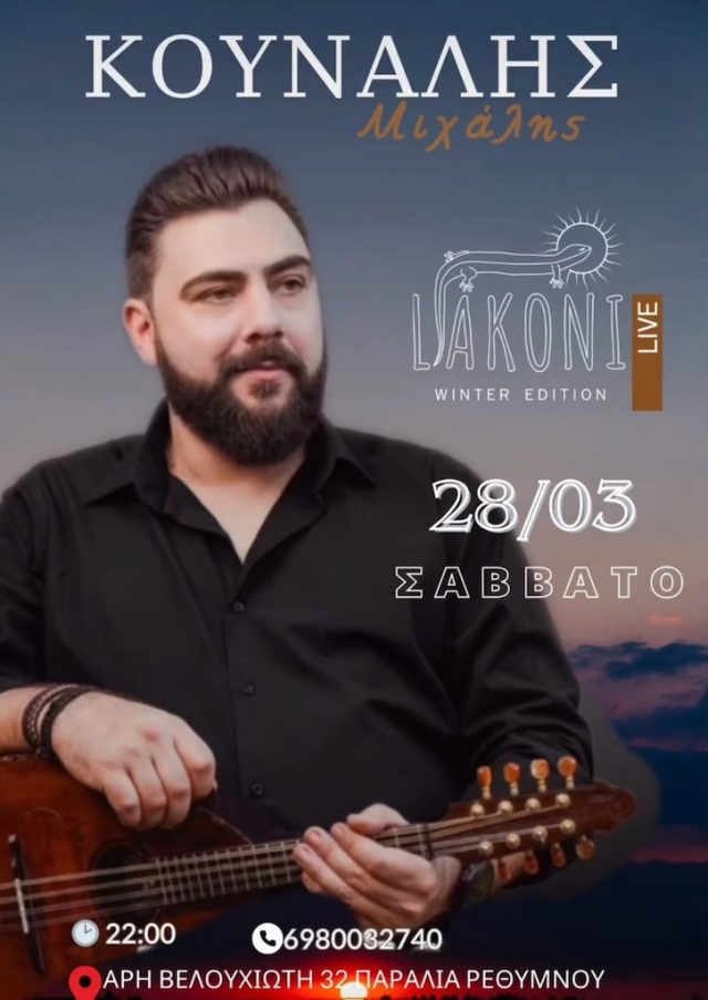 Κυριακή 29 Μαρτίου, 13.00- 21.00 Εστιατόριο Αυλή – Ξανθουδίδου 22, Παλιά Πόλη Ρέθυμνο Τιμή εισόδου: 10 ευρώ