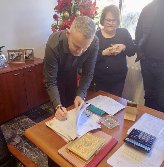 Κατά την ορκωμοσία, ο Δήμαρχος Γεώργιος Κλάδος καλωσόρισε θερμά τον νέο υπάλληλο, καθώς και τη σύζυγό με τα παιδιά τους που παρευρέθηκαν στην τελετή, ευχόμενος καλή επιτυχία στο έργο που αναλαμβάνει.