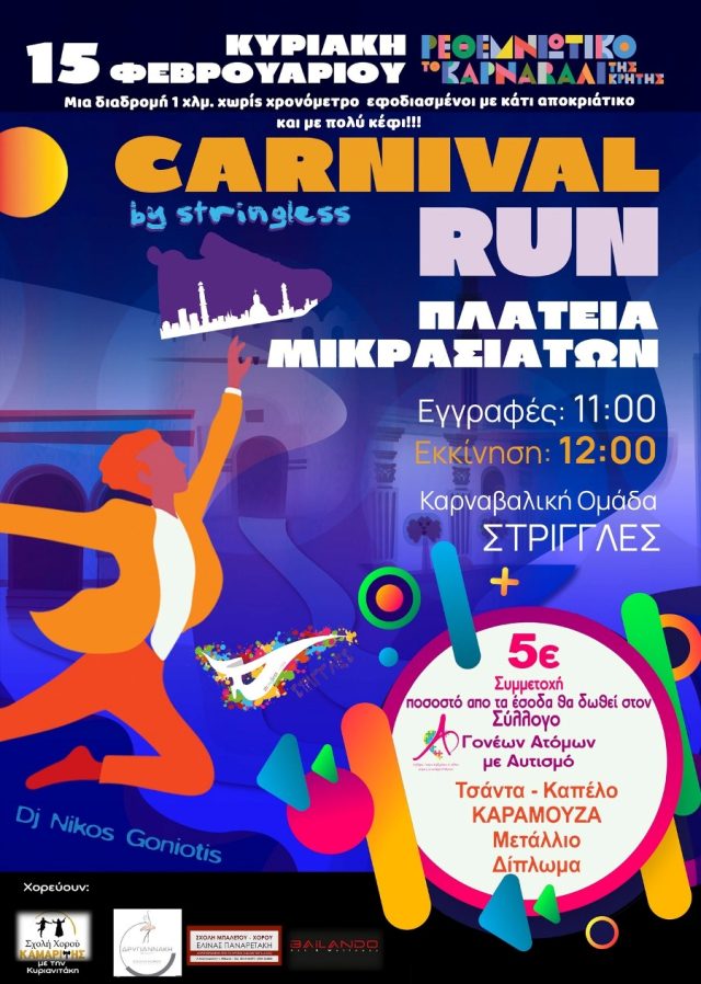 Σας περιμένουμε για ένα μεγάλο πάρτι, που θα ξεκινήσει με την διασκεδαστική βόλτα στα στενά της παλιάς πόλης, σε μια διαδρομή μόλις 1χλμ. και μετά στον τερματισμό μαζί με χορευτικά σύνολα της πόλης μας.