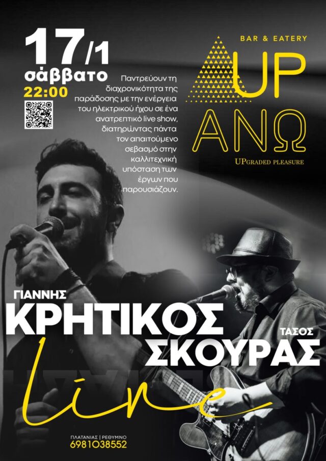 Ο Γιάννης Κρητικός, καταξιωμένος ηθοποιός (Η Γη της Ελιάς, Your Face Sounds Familiar κ.ά.) και ερμηνευτής με σημαντικές συνεργασίες (Μίμης Πλέσσας, Τάκης Σούκας, Υπόγεια Ρεύματα κ.ά.), συναντά τον τραγουδοποιό και performer Τάσο Σκούρα (Βασίλης Παπακωνσταντίνου, Socrates, Πάνος Μουζουράκης κ.ά.) σε ένα γεμάτο ενέργεια live show, που παντρεύει την παράδοση με τον ηλεκτρικό ήχο του σήμερα.