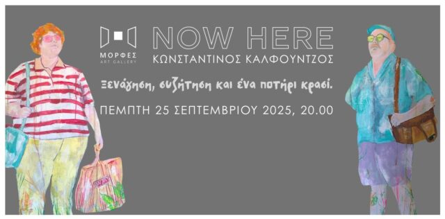 Σας περιμένουμε την Πέμπτη 25 Σεπτεμβρίου 2025, στις 19.00 σε μια ξενάγηση – συζήτηση στο πλαίσιο της έκθεσης NOW HERE του Κωνσταντίνου Καλφούντζου.