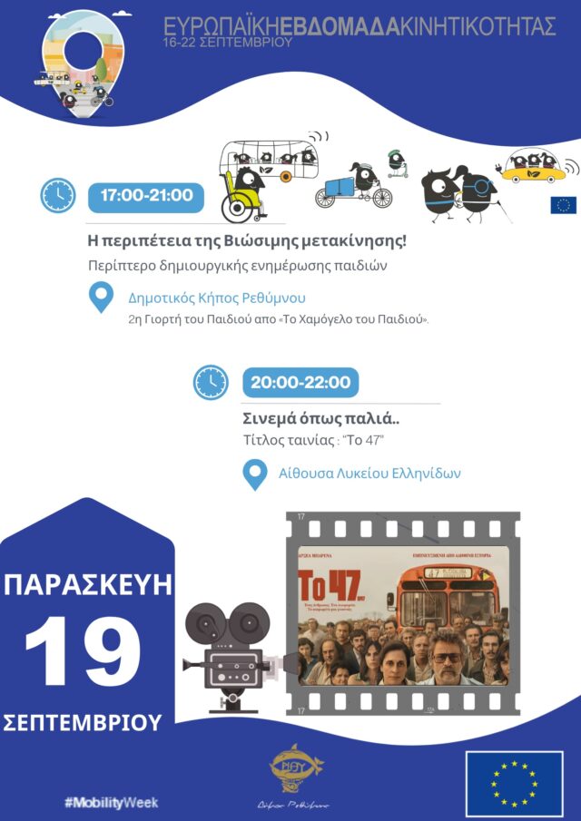 Ο Δήμος Ρεθύμνης συμμετέχει δυναμικά και φέτος στην Ευρωπαϊκή Εβδομάδα Κινητικότητας.