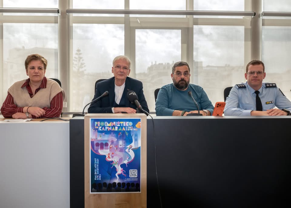 «Εκ μέρους της Περιφέρειας Κρήτης σας καλωσορίσω και να σας ευχαριστήσω για την παρουσία σας στη σημερινή συνέντευξη Τύπου, που σηματοδοτεί και φέτος την έναρξη μιας από τις πιο ζωντανές, χαρούμενες και εξωστρεφείς διοργανώσεις του τόπου μας: το Ρεθεμνιώτικο Καρναβάλι.