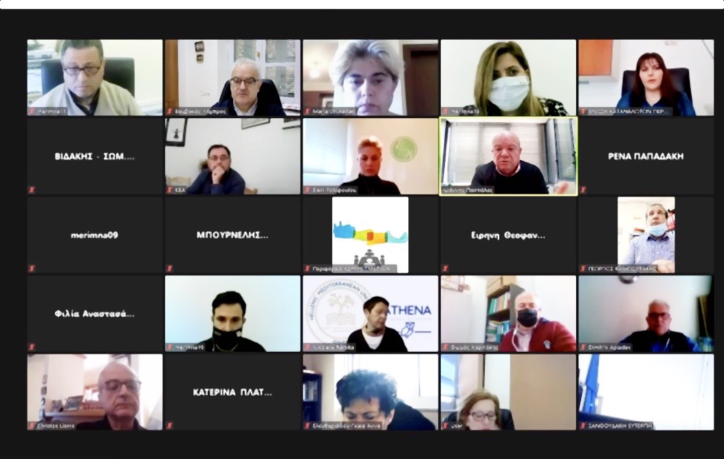 Πραγματοποιήθηκε με επιτυχία μέσω τηλεδιάσκεψης, παρουσία του Αντιπεριφερειάρχη Δημόσιας Υγείας και Κοινωνικής Πολιτικής Λάμπρου Ν. Βαμβακά και του Αναπληρωτή Γενικού Διευθυντή Δημόσιας Υγείας και Κοινωνικής Μέριμνας της Περιφέρειας Κρήτης, Σπύρου Επιτροπάκη, η Τακτική Απολογιστική Συνέλευση των φορέων που συμμετέχουν στην Κοινωνική Σύμπραξη της Περιφέρειας Κρήτης του «Προγράμματος Επισιτιστικής και Βασικής Υλικής Συνδρομής (ΤΕΒΑ) 2018-2021».