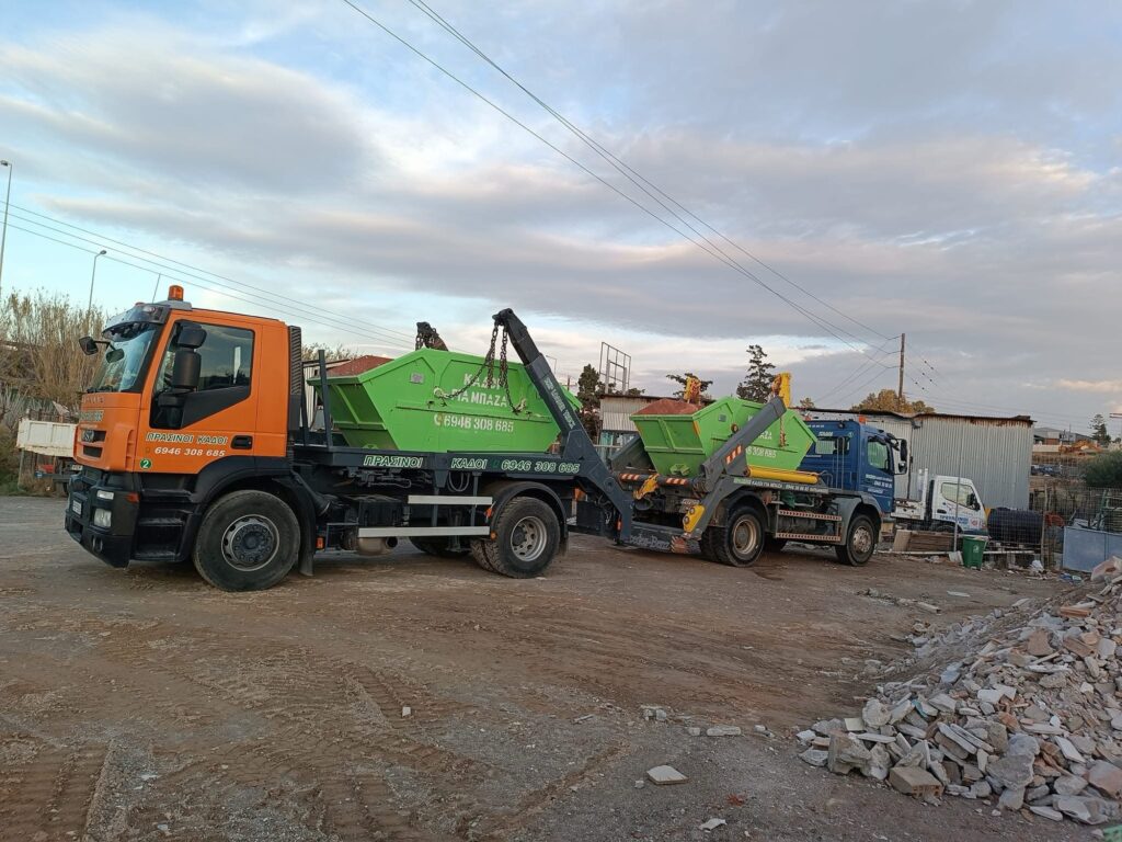 - Ενοικίαση κάδων μπαζών: Διατίθενται κάδοι διαφόρων μεγεθών για εργοτάξια, ιδιωτικά έργα, ανακαινίσεις και καθαιρέσεις. Η τοποθέτηση και αποκομιδή γίνεται με ευελιξία και βάση των αναγκών του πελάτη.