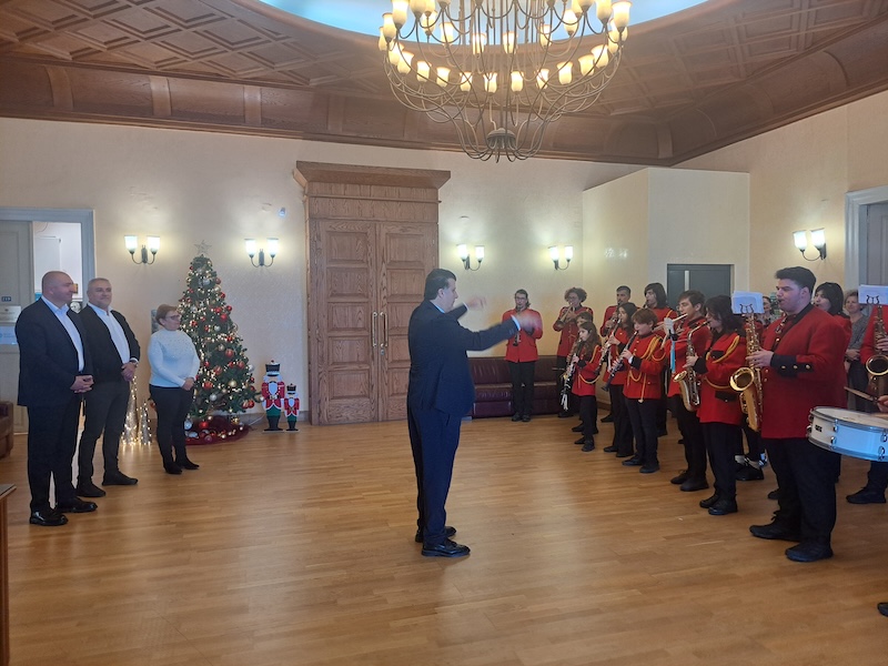 Οι φαντάροι από το 547 Α/Μ ΤΠ, τα μέλη του Ομίλου Βρακοφόρων Κρήτης και οι μουσικοί της Δημοτικής Φιλαρμονικής έψαλαν τα πρωτοχρονιάτικα κάλαντα, γεμίζοντας τον χώρο με ήχους, χαμόγελα και αισιοδοξία για τη νέα χρονιά. Τους υποδέχτηκε θερμά η Αντιπεριφερειάρχης Ρεθύμνης, κα Μαρία Λιονή, ο Θεματικός Αντιπεριφερειάρχης Επιχειρηματικότητας, κ. Μιχάλης Βάμβουκας, ο Εντεταλμένος Σύμβουλος Πολιτικής Προστασίας Π.Ε. Ρεθύμνης, κ. Μιχάλης Σαρρής μαζί με τους υπαλλήλους της Περιφερειακής Ενότητας Ρεθύμνης.