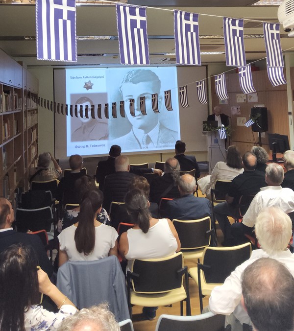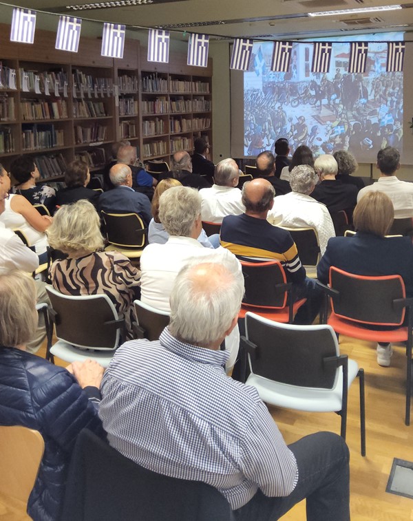 Η εισήγηση του κ. Τσάκωνα διανθίστηκε με πλούσιο αρχειακό και φωτογραφικό υλικό, καθώς και ηχητικά ντοκουμέντα από τραγούδια της μοναδικής Σοφίας Βέμπο, που με τη φωνή της εξύψωνε το φρόνημα των Ελλήνων στρατιωτών.