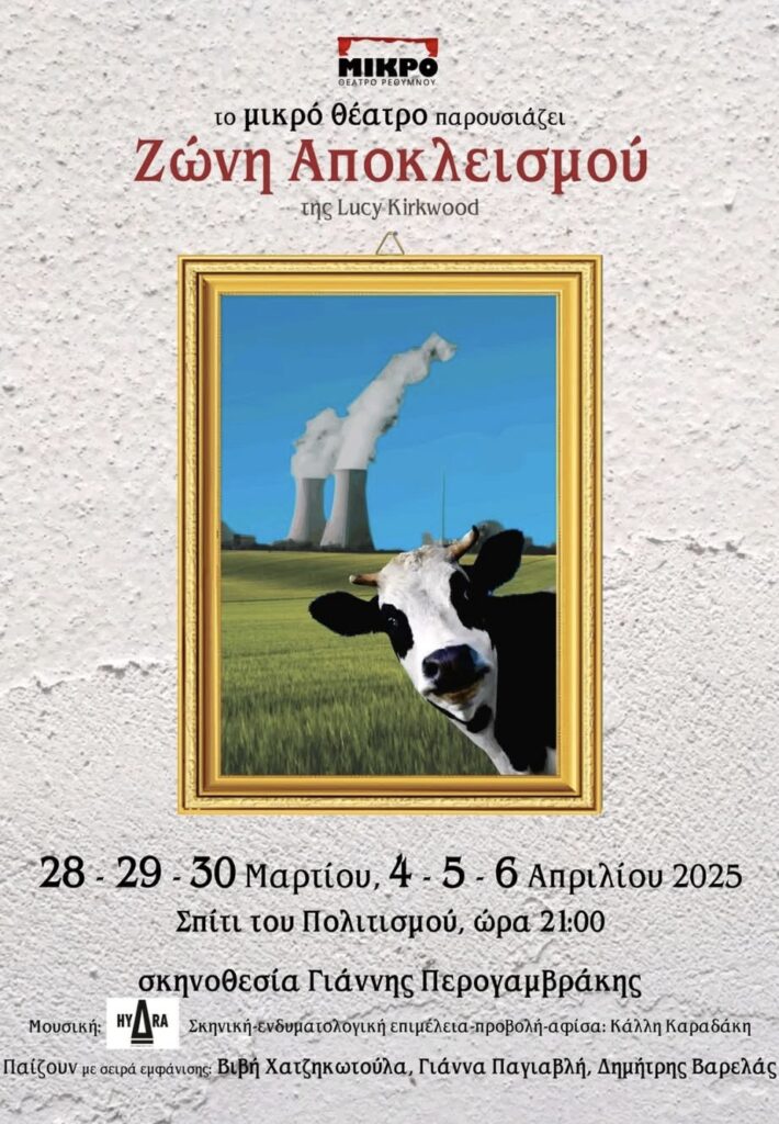 Το Μικρό Θέατρο Ρεθύμνου επιστρέφει με την παράσταση «Ζώνη Αποκλεισμού» που παρουσιάστηκε για πρώτη φορά την άνοιξη του 2025. Συνολικά έχουν προγραμματιστεί τρεις ακόμα παραστάσεις στις 25 & 26 Οκτωβρίου.