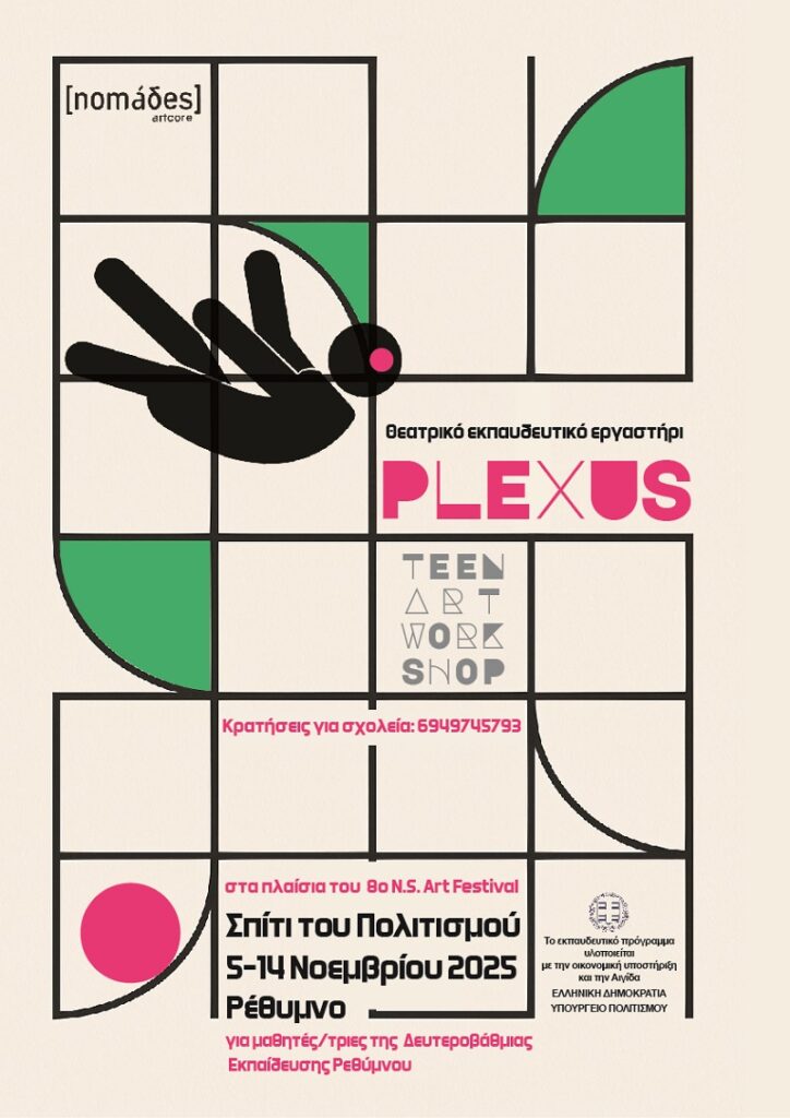 Καλλιτεχνικό και εκπαιδευτικό εργαστήρι για έφηβους, μέσα στο εικαστικό σύμπαν που θα δημιουργηθεί στο 8ο N.S. Art Festival, όπου εστιάζει στην έννοια του Κάνναβου. Στο Σπίτι του Πολιτισμού, παράλληλα με την έκθεση του 8ου N.S. Art Festval 2025, από τις 6 έως και τις 14 Νοεμβρίου 2025, μαθητές της δευτεροβάθμιας θα μπορούν να επισκεφτούν την έκθεση και ένα θεατρικό εργαστήριο θα τους δώσει την δυνατότητα να γνωρίσουν την έννοια του Κάνναβου με βιωματικό τρόπο. Στόχος να εκπαιδευτεί η αντίληψή για το πως βλέπουν μια έκθεση σύγχρονης τέχνης αλλά και για το πώς εκφράζονται μέσα από αυτήν.