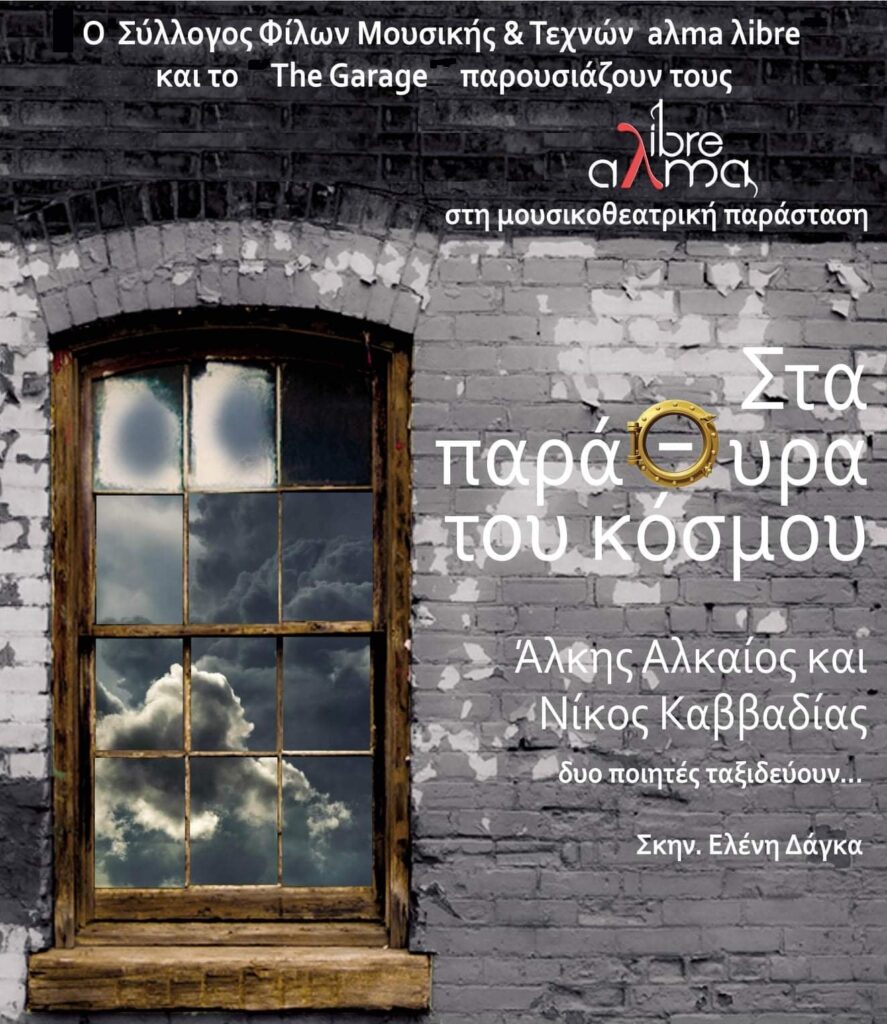 Άλκης Αλκαίος και Νίκος Καββαδίας. Νίκος Καββαδίας και Άλκης Αλκαίος. Η μελοποίηση των στίχων τους στιγμάτισε τουλάχιστον 3 γενιές στο ελληνικό τραγούδι. Ναυτικός και ταξιδευτής της θάλασσας σε χώρες μακρινές ο ένας, ταξιδευτής του νου από τα παράθυρα του σπιτιού και της καρδιάς του ο άλλος. Δύο παράλληλοι μονόλογοι ξεδιπλώνονται στην παράστασή μας, τόσο διαφορετικοί αλλά και τόσο όμοιοι. Και οι ιστορίες τους συνοδεύονται από τα τραγούδια τους, σε νέες και δημιουργικές ενορχηστρώσεις και εκτελέσεις, σφραγίζοντας τα εισιτήρια του κοινού για ένα ταξίδι στον κόσμο, ένα ταξίδι έξω και μέσα μας.