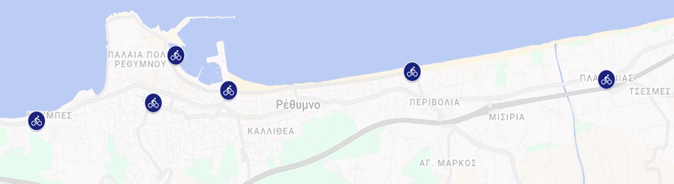 Οι εγγεγραμμένοι χρήστες θα έχουν τη δυνατότητα να παραλάβουν και να χρησιμοποιήσουν ένα ηλεκτρικό ποδήλατο για χρονικό διάστημα των τριών (3) ωρών, το οποίο καθορίζεται στον Κανονισμό Λειτουργίας του Συστήματος. Στη συνέχεια, για την ολοκλήρωση της ενοικίασής τους, θα πρέπει να επιστρέψουν και να κλειδώσουν το ποδήλατο τοποθετώντας το σε οποιαδήποτε διαθέσιμη θέση κλειδώματος και φόρτισης ποδηλάτων από τους διαθέσιμους σταθμούς που έχουν εγκατασταθεί στα παρακάτω επιλεγμένα σημεία του Δήμου:
