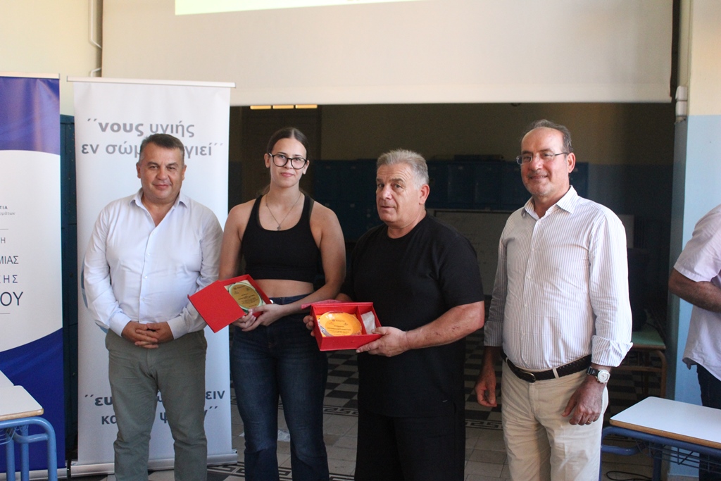 Με μια λιτή και σεμνή τελετή, η οποία έλαβε χώρα την Τρίτη 8 Ιουλίου, στις 19:30 στο 1ο ΓΕΛ Ρεθύμνου, με τη συνεργασία της Περιφερειακής Ενότητας Ρεθύμνης, της Διεύθυνσης Δευτεροβάθμιας Εκπ/σης Ρεθύμνου και της Ένωσης Πτυχιούχων Φυσικής Αγωγής, πραγματοποιήθηκε η τελετή βράβευσης των μαθητών/τριών, οι οποίοι/ες συμμετείχαν και διακρίθηκαν στους Πανελλήνιους Σχολικούς Αγώνες κατά το σχολικό έτος 2024-2025, καθώς και των Προπονητών τους.