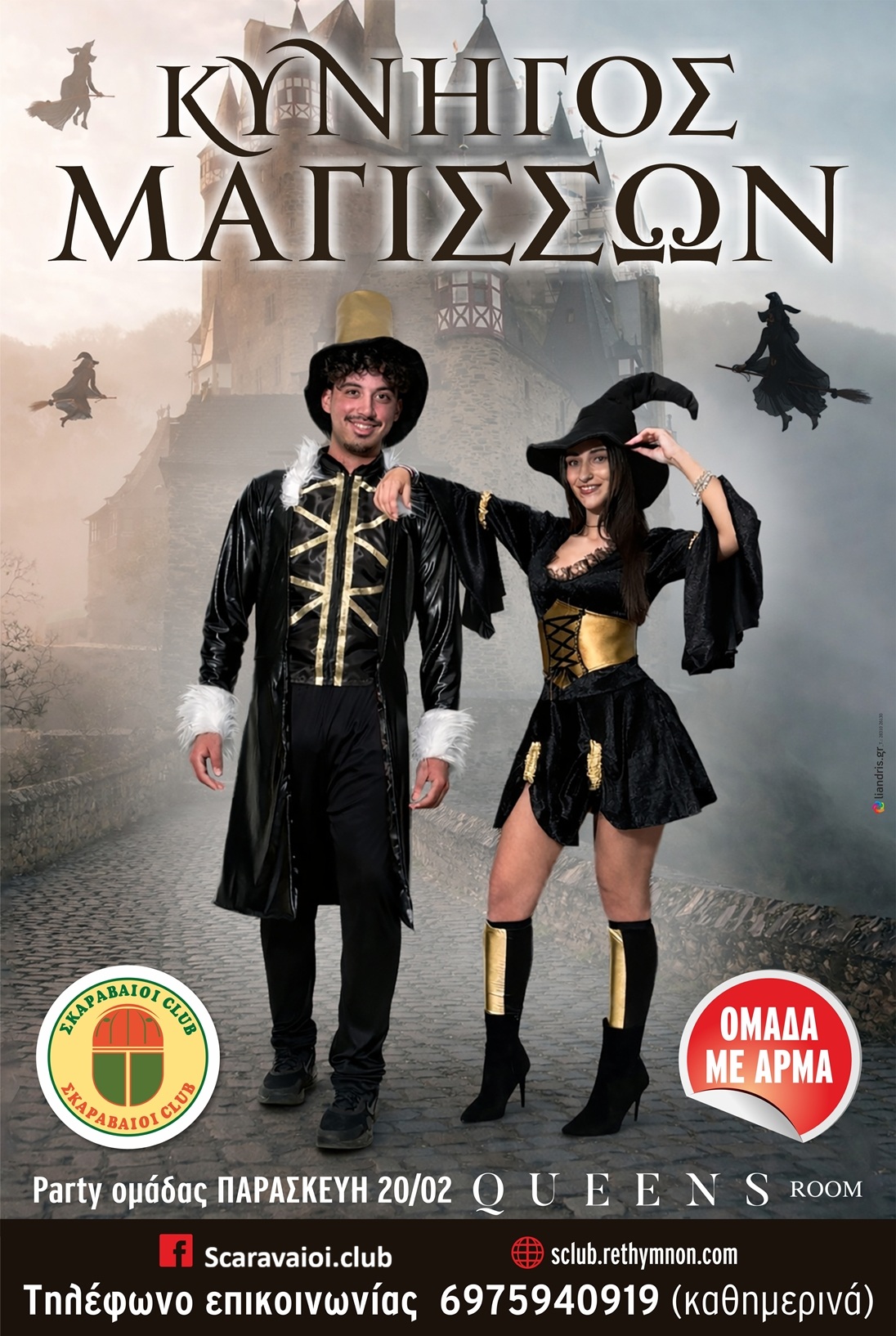 ΚΑΡΝΑΒΑΛΙ ΣΤΟΛΕΣ ΟΜΑΔΩΝ Σκαραβαίοι Club 2026 Ιαν 13, 2026 FacebookTwitterWhatsAppLinkedinViberTelegramEmail Ρεθεμνιώτικο Καρναβάλι 2026 Ομάδα: Σκαραβαίοι Club Θέμα: «Κυνηγός Μαγισσών» Τηλ: 6975 940919