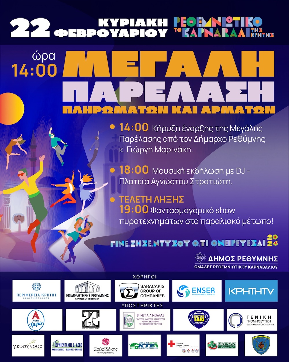 Σε «γραμμή εκκίνησης» για την κορύφωση του Ρεθεμνιώτικου Καρναβαλιού 2026 – Οδηγίες για τους επισκέπτες