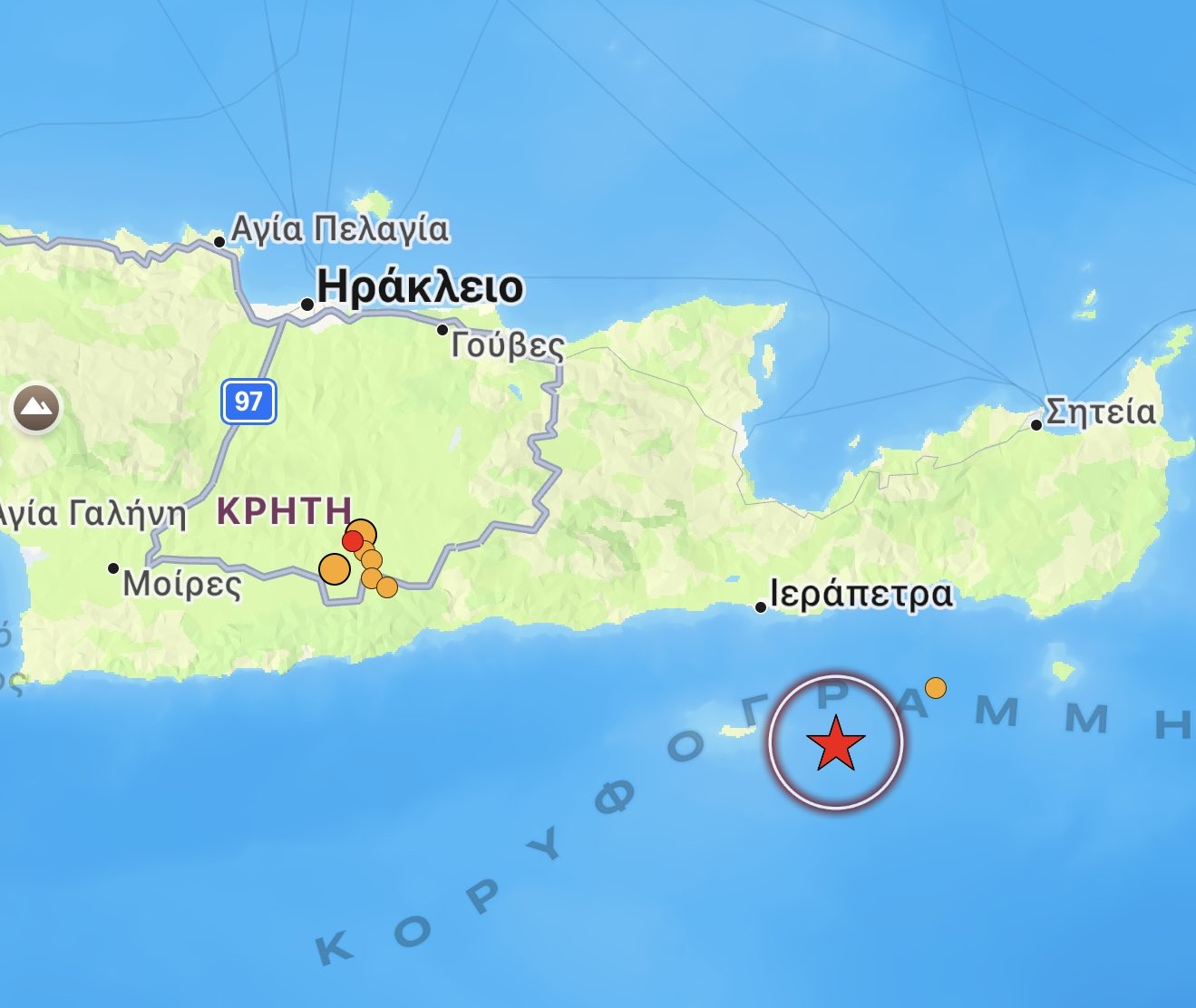 Νέος αισθητός σεισμός 5,3 Ρίχτερ έγινε στους κατοίκους της Κρήτης στις 14:26.