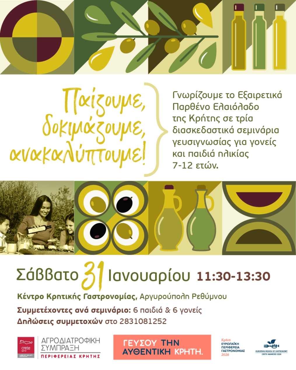 Ελαιόλαδο: παίζουμε… δοκιμάζουμε… ανακαλύπτουμε!Όταν το Εξαιρετικά Παρθένο Ελαιόλαδο της Κρήτης γίνεται παιχνίδι, γνώση και οικογενειακή εμπειρία.