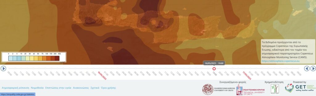 Η Διεύθυνση Δημόσιας Υγείας σε συνεργασία με την Διεύθυνση Περιβάλλοντος και Χωρικού Σχεδιασμού, ενημερώνει ότι βάσει των μοντέλων πρόβλεψης από το δίκτυο «ΣΧΕΔΙΑ» της Περιφέρειας Κρήτης σε συνεργασία με το Πανεπιστήμιο Κρήτης και το Πολυτεχνείο Κρήτης, αύριο Παρασκευή αναμένεται σημαντική υπέρβαση του ορίου του μέσου όρου (ΜΟ) στη συγκέντρωση ΑΣ 10 (άνω των 100 µg/m³), ως αποτέλεσμα μεταφερόμενης σκόνης από τη Σαχάρα προς την περιοχή της Ανατολικής Μεσογείου.