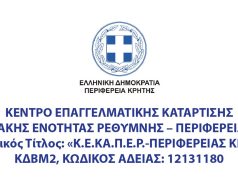 Το Κέντρο Επαγγελματικής Κατάρτισης Περιφερειακής Ενότητας Ρεθύμνης – Περιφέρειας Κρήτης (Κ.Ε.ΚΑ.Π.Ε.Ρ.-ΠΕΡΙΦΕΡΕΙΑΣ ΚΡΗΤΗΣ), στο πλαίσιο διερεύνησης των τρόπων αξιοποίησης δράσεων «Ανάπτυξης Ανθρώπινου Δυναμικού» σε τοπικό επίπεδο, οργανώνει συνάντηση φορέων την Τρίτη 16 Απριλίου 2013 και ώρα 11 π.μ. στο κτίριο (αίθουσα συνεδριάσεων) της Περιφερειακής Ενότητας Ρεθύμνης, Πλατεία Ηρώων Πολυτεχνείου.