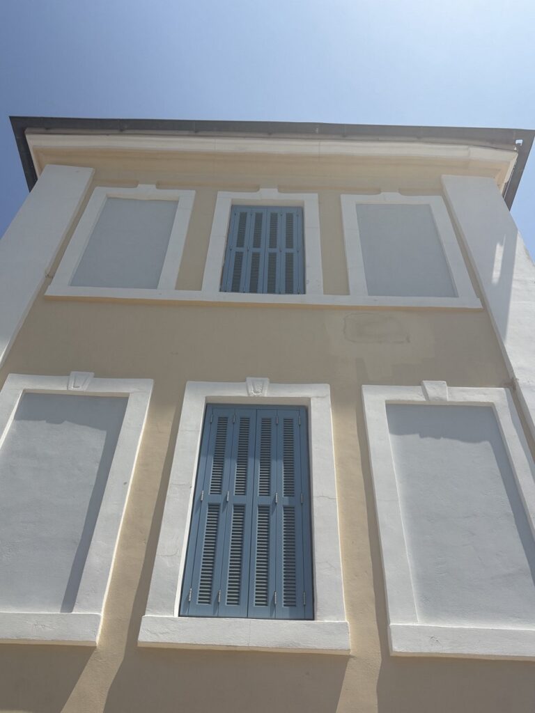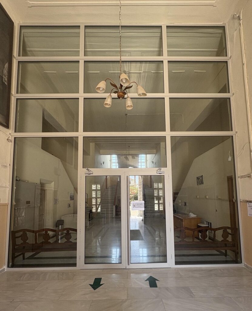 - Κατασκευή υαλοπετάσματος σε όλο το ύψος της κεντρικής εισόδου, με ανοιγόμενες υαλόθυρες