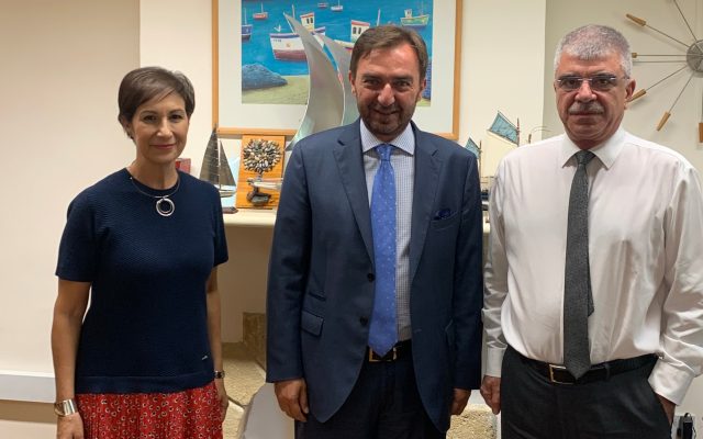 Με τον Γενικό Διευθυντή του Υπουργείου Εσωτερικών, Κύπρο Κυπριανού, είχε συνάντηση ο Αντιπεριφερειάρχης Κρήτης για Ευρωπαϊκά και Διεθνή Θέματα, Γιώργος Αλεξάκης. Η συνάντηση έγινε στη Κύπρο παρουσία και των επικεφαλής της Μονάδας Πολιτικής και Ευρωπαϊκών Θεμάτων στο Υπουργείο, Ανθούλας Σαββίδη, και Έλενας Πατσάλου. Στη συνάντηση εργασίας συζητήθηκε η συνεργασία μεταξύ Κύπρου και Περιφέρειας Κρήτης για την αξιοποίηση των ευρωπαϊκών πόρων από την Τοπική Αυτοδιοίκηση καθώς και την κατάρτιση των αιρετών των ΟΤΑ.