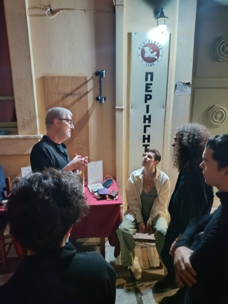 Η χθεσινή παράσταση του «Εγώ κι Εσύ» είχε ιδιαίτερη πολιτιστική σημασία για το Ρέθυμνο. Ο Θεατρικός Περίπλους υποδέχτηκε στην αίθουσα της Περιηγητικής Λέσχης τον μεταφραστή του έργου, Χρήστο Νικολόπουλο.