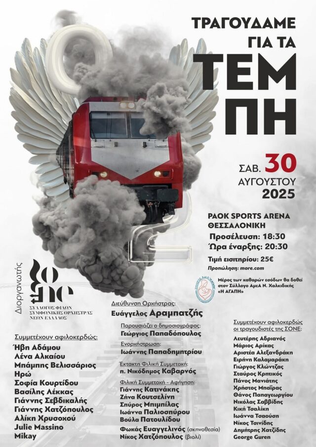 Ο Σύλλογος Φίλων Συμφωνικής Ορχήστρας Νέων Ελλάδος, θα πραγματοποιήσει στην Θεσσαλονίκη, συναυλία αφιερωμένη στην μνήμη των 57 θυμάτων του σιδηροδρομικού δυστυχήματος στα Τέμπη.