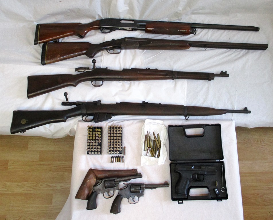 Βρέθηκαν και κατασχέθηκαν, 2 πολεμικά τυφέκια, πιστόλι, 2 περίστροφα, 2 κυνηγετικά όπλα, γεμιστήρας και φυσίγγια