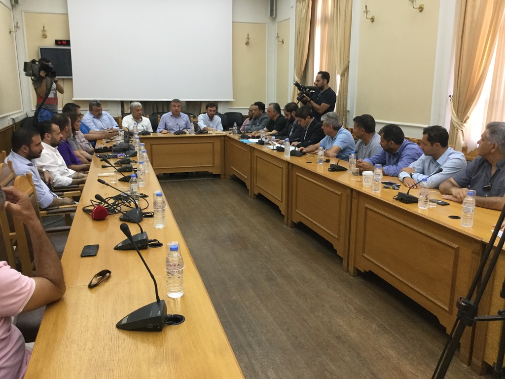 Άρχισε στη Περιφέρεια η ενημερωτική συνάντηση του Περιφερειάρχη με τους βουλευτές και εκπροσώπους βουλευτών, παρουσία Αντιπεριφερειαρχών, του Προέδρου του Περιφερειακού Συμβουλίου, Περιφερειακών Συμβούλων, σχετικά με τις εξελίξεις για τον Βόρειο Οδικό Άξονα ύστερα και από τις σχετικές ανακοινώσεις που έγιναν από τον Υπουργό Μεταφορών και Υποδομών Χρήστο Σπίρτζη.