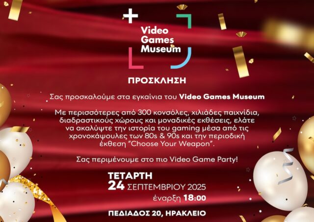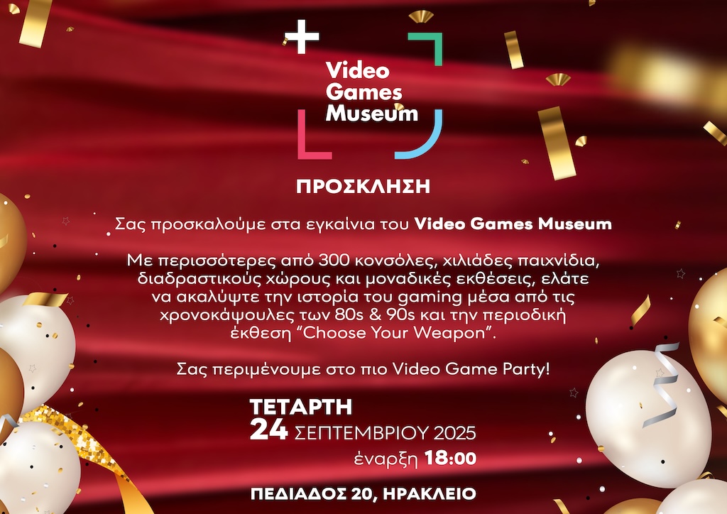 Τα επίσημα εγκαίνια του Video Games Museum θα πραγματοποιηθούν την Τετάρτη 24 Σεπτεμβρίου 2025, στις 18:00, στο Ηράκλειο Κρήτης στην οδό Πεδιάδος 20.
