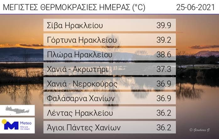 Υψηλές θερμοκρασίες καταγράφονται στην Κρήτη και την Παρασκευή 25/06/2021.