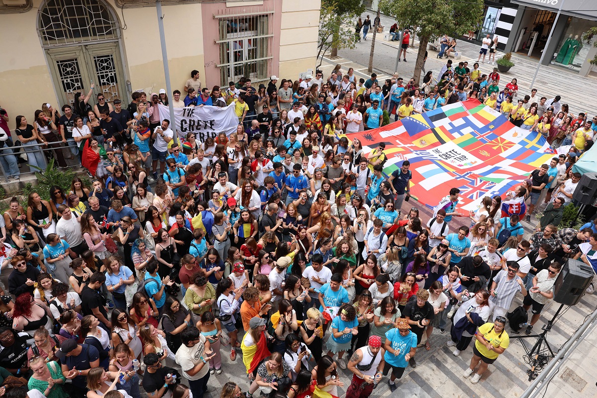 Το «The Crete Trip 2025» που διοργανώνεται για 13η χρονιά από το Erasmus Student Network Greece, (Ομοσπονδία Φοιτητών ERASMUS), το τετραήμερο πολιτιστικό ταξίδι των φοιτητών και υλοποιείται με την στήριξη της Περιφέρειας Κρήτης, ξεκίνησε σήμερα Πέμπτη στην «καρδιά» του Ηρακλείου στην πλ. Δασκαλογιάννη. Εκεί ο Περιφερειάρχης Κρήτης Σταύρος Αρναουτάκης υποδέχτηκε τους 800 περίπου φοιτητές από 50 χώρες που πραγματοποίησαν το καθιερωμένο flag parade του Κρητικού Πολιτιστικού Φεστιβάλ, στους κεντρικούς δρόμους της πόλης.