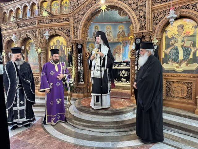 β) το πρωί της Μεγάλης Τρίτης, 15ης Απριλίου 2025, στο Καθολικό της Ιεράς Πατριαρχικής και Σταυροπηγιακής Μονής Προφήτου Ηλιού Ρουστίκων.