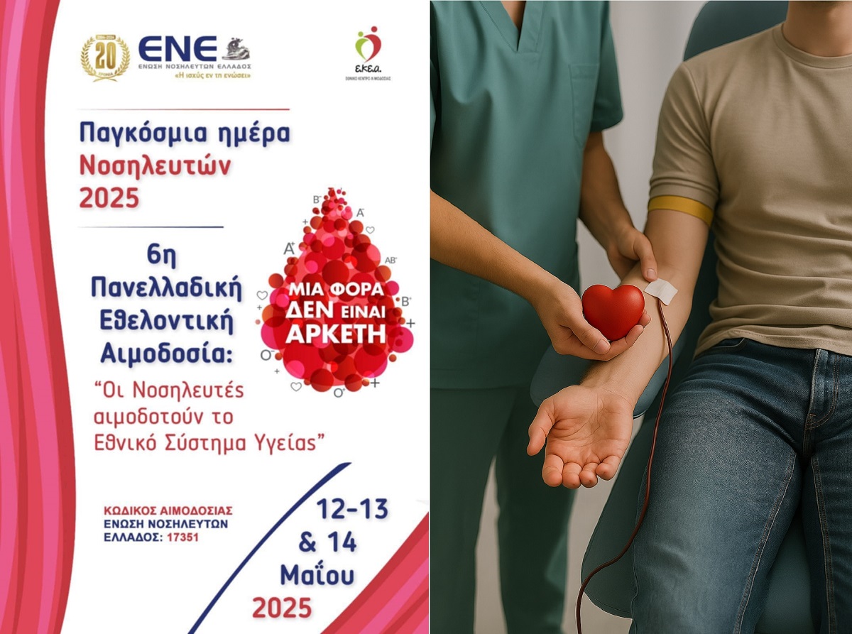 Με αφορμή την Παγκόσμια Ημέρα Νοσηλευτών, που τιμάται κάθε χρόνο στις 12 Μαΐου – ημέρα γέννησης της Φλόρενς Νάιτινγκεϊλ, θεμελιώτριας της σύγχρονης νοσηλευτικής- το Γενικό Νοσοκομείο Ρεθύμνου συμμετέχει ενεργά στην 6η Πανελλαδική Εθελοντική Αιμοδοσία της Ένωσης Νοσηλευτών Ελλάδος (ΕΝΕ), η οποία φέτος πραγματοποιείται υπό το σύνθημα: