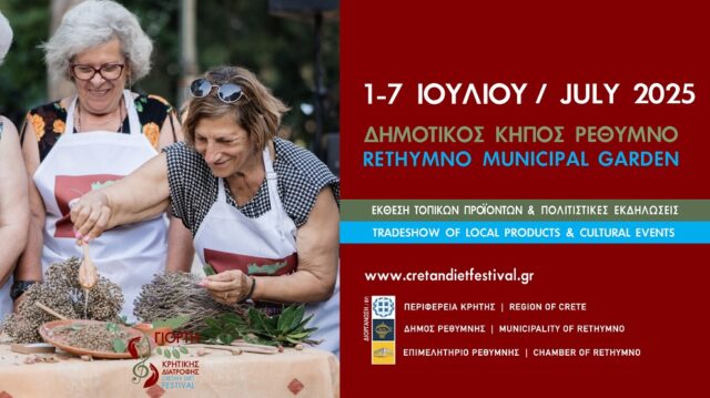 Ο Δήμος Ρεθύμνης, η Περιφερειακή Ενότητα Pεθύμνου και το Επιμελητήριο Ρεθύμνου όπως κάθε χρόνο, έτσι και φέτος πραγματοποιούν την «Γιορτή Κρητικής Διατροφής» από 1 έως 7 Ιουλίου στο Δημοτικό Κήπο της πόλης.