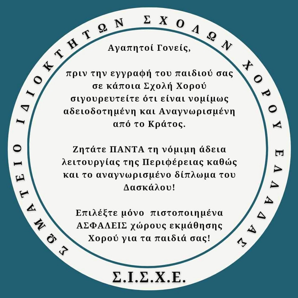 Το Σωματείο Ιδιοκτητών Σχολών Χορού Ελλάδας προτρέπει τους γονείς να είναι προσεχτικοί στην επιλογή σχολών χορού