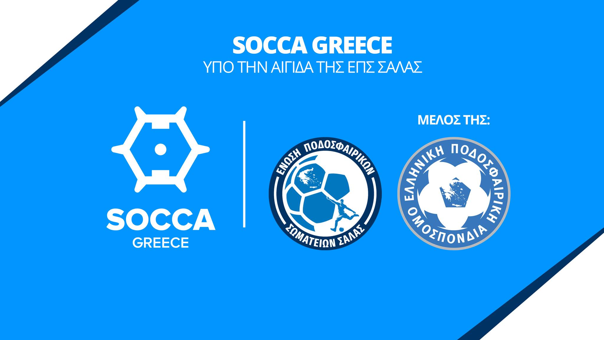 Η Socca Greece αποτελεί τον μοναδικό επίσημο φορέα διοργάνωσης του mini ποδοσφαίρου 6×6 και 8×8 (Socca) στην Ελλάδα καθώς τελεί υπό την αιγίδα της Ένωσης Ποδοσφαιρικών Σωματείων Σάλας (ΕΠΣ Σάλας), η οποία είναι μέλος της Ελληνικής Ποδοσφαιρικής Ομοσπονδίας (ΕΠΟ).