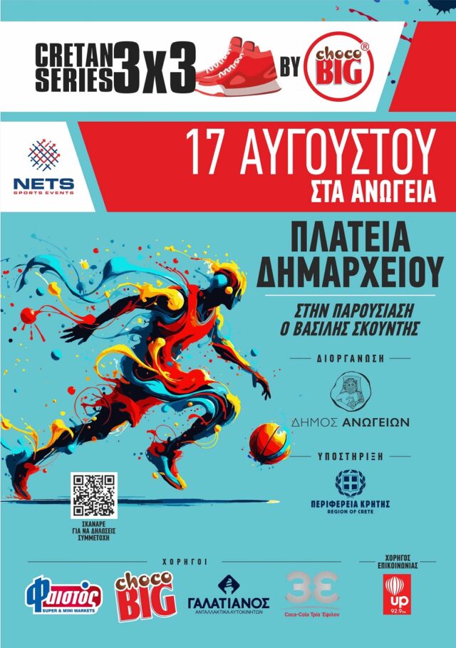 Στον ηρωικό και μαρτυρικό τόπο των Ανωγείων, στη ράχη του Ψηλορείτη, κάτω από το Ιδαίο Άντρο και σε υψόμετρο 830 μέτρων, θα διεξαχθεί την Κυριακή, 17 Αυγούστου, το όγδοο Τουρνουά 3x3 Basketball Cretan Series by choco BIG του 2025.