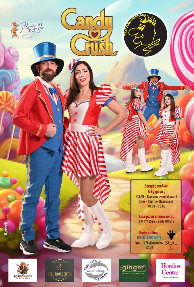ΚΑΡΝΑΒΑΛΙ ΣΤΟΛΕΣ ΟΜΑΔΩΝ Τζιτζικοτρίχηδες 2026 Δεκ 1, 2025 FacebookTwitterWhatsAppLinkedinViberTelegramEmail Ρεθεμνιώτικο Καρναβάλι 2026 Ομάδα: Τζιτζικοτρίχηδες Θέμα: Candy Crush Τιμή: 40€, Παιδική 32€ Τηλ: 6944746524 – 6907701514 Δοκιμές στολών & Εγγραφές: Τρίτη – Πέμπτη- Παρασκευή, 18:00 – 20:00, στο PCLAB (Κωνσταντινουπόλεως 9)