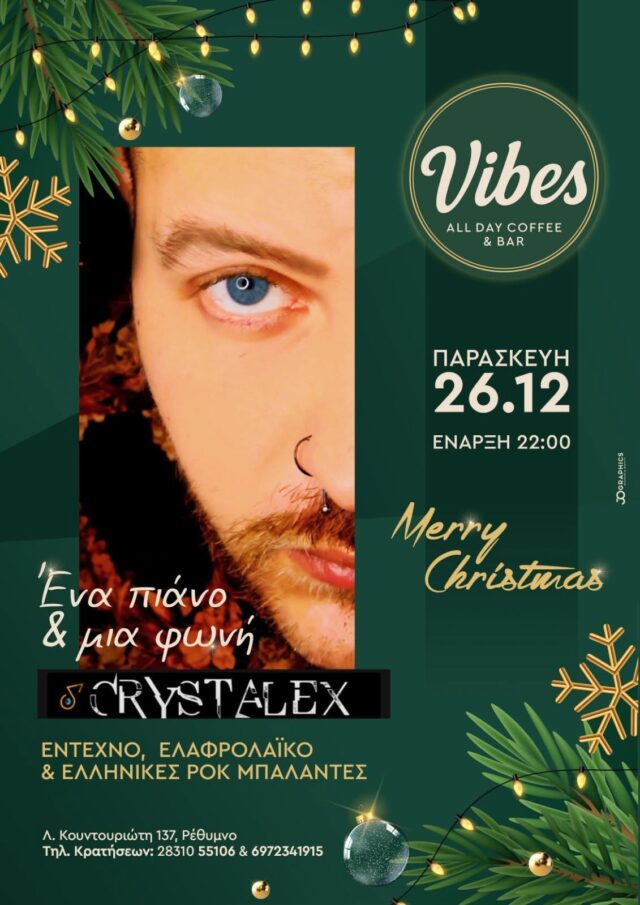 Μουσική βραδιά με τον Crystalex στο Vibes All Day Coffee & Bar (Κουντουριώτου 137, Ρέθυμνο).