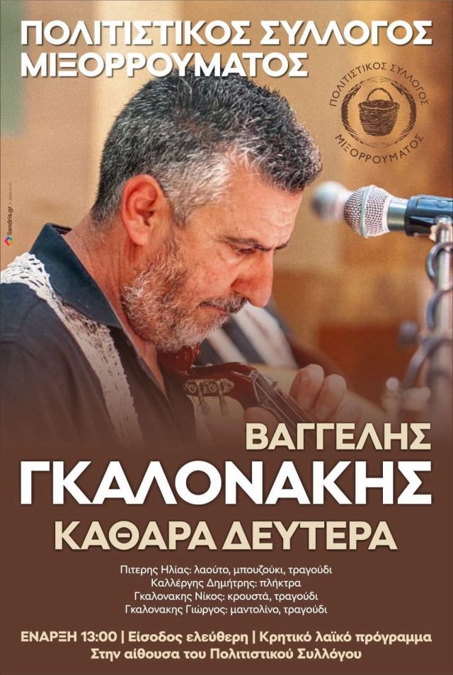 9 Αυγούστου 2026 — Συναυλία με τραγούδια από το αρχείο του Παύλου Βλαστού.