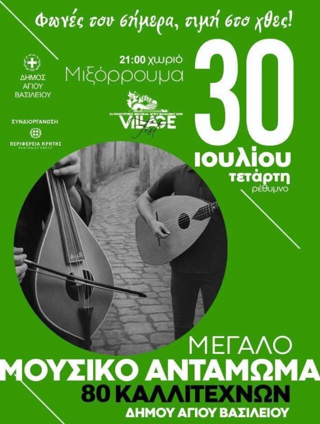 Την Τετάρτη 30 Ιουλίου 2025, το χωριό Μιξόρρουμα Αγίου Βασιλείου γεμίζει με τη δύναμη και την αυθεντικότητα της κρητικής μουσικής, καθώς πολλοί από τους πιο ταλαντούχους Κρητικούς καλλιτέχνες της περιοχής του Δήμου Αγίου Βασιλείου ενώνουν τις δυνάμεις τους στο ίδιο πάλκο!