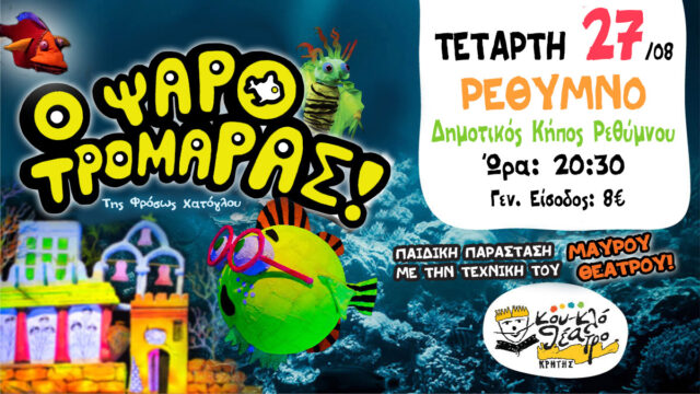 ΣΥΝΑΓΕΡΜΟΣ στην Ψαροχώρα! Έρχεται ο Ψαροτρομάρας στο Ρέθυμνο στο Δημοτικό Κήπο Ρεθύμνου 27 Αυγούστου και ώρα 20.30!