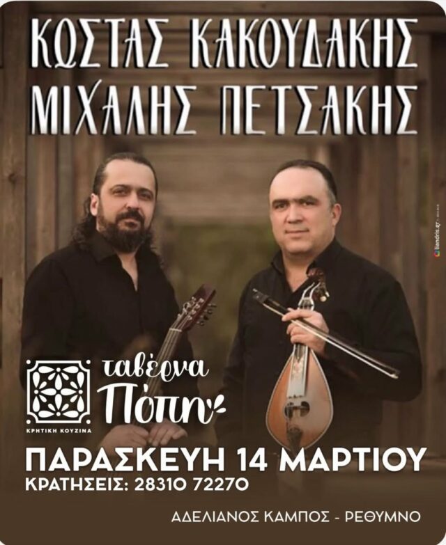 Γενική είσοδος: 12 ευρώ. Πληροφορίες- κρατήσεις: 6983320439.