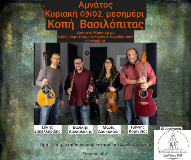 -την Πέμπτη 20 Φεβρουαρίου στην Τ.Κ Ακουμίων στην πλατεία στον πλάτανο.