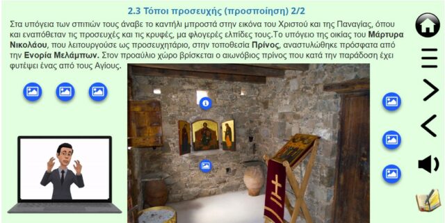 Πρέπει να επισημάνω, επίσης, ότι το ψηφιακό εκπαιδευτικό υλικό δεν περιορίστηκε απλά στην ανάλυση και παρουσίαση ιστορικών δεδομένων. Κεντρικός μου στόχος ήταν η μετατροπή της ιστορικής γνώσης σε ένα σύγχρονο εκπαιδευτικό εργαλείο, το οποίο θα μπορούσε να ενισχύσει τη σχέση της νέας γενιάς με την ιστορία και την πολιτιστική της κληρονομιά. Με χρήση κατάλληλου λογισμικού και ψηφιακών εργαλείων δημιουργήθηκε ένα πολυτροπικό εκπαιδευτικό υλικό, που συνδυάζει ιστορικά κείμενα, εικόνες, βίντεο και διαδραστικές εφαρμογές. Το υλικό υιοθετεί τις αρχές της πολυμεσικής μάθησης, προσφέροντας μια μαθησιακή εμπειρία που ενισχύει την αυτονομία και την κριτική σκέψη των εκπαιδευομένων. Ενσωματώνοντας επίσης στοιχεία αυτοαξιολόγησης και ανατροφοδότησης διασφαλίζεται η ενεργή συμμετοχή των εκπαιδευομένων. Παράλληλα, η χρήση των πολυτροπικών μέσων, των διαδραστικών βίντεο και των συνεντεύξεων, δημιουργεί μια ζωντανή αφήγηση που ξεπερνά τα στενά όρια της παραδοσιακής διδασκαλίας της ιστορίας.