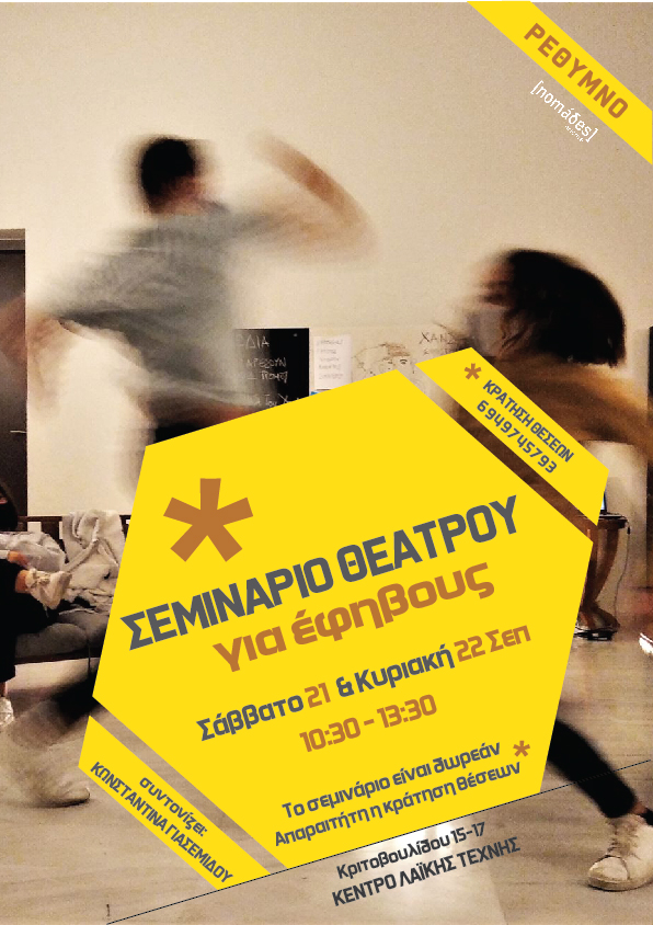 Το σεμινάριο συντονίζει από τους nomades artcore η Κωνσταντίνα Γιασεμίδου | ηθοποιός, σκηνοθέτρια, χορογράφος.
