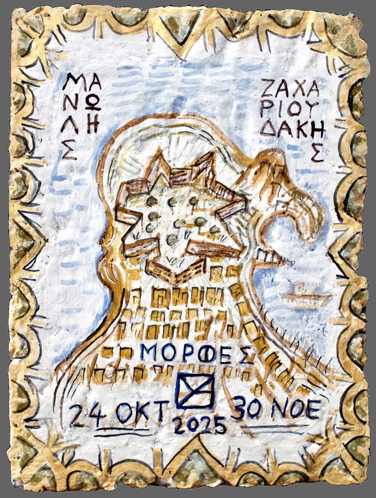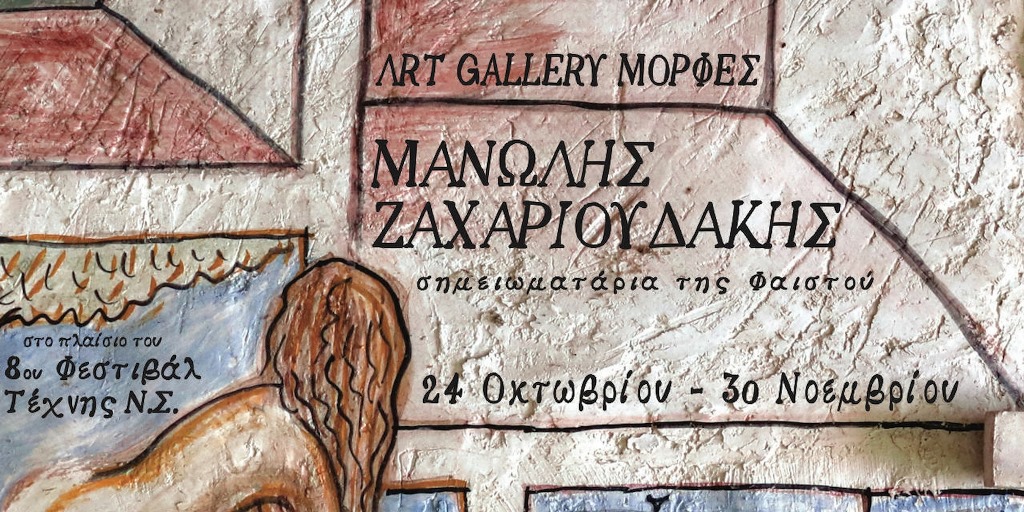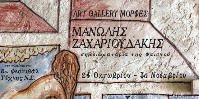 Το 8ο Φεστιβάλ Τέχνης Ν.Σ. σε συνδιοργάνωση με το Τμήμα Πολιτισμού του Δήμου Ρεθύμνης παρουσιάζει από 24 Οκτωβρίου έως 30 Νοεμβρίου 2025, στην ΛRT Gallery Μορφές, την Έκθεση Σύγχρονης Τέχνης του Μανώλη Ζαχαριουδάκη, με θέμα: «Σημειωματάρια της Φαιστού».